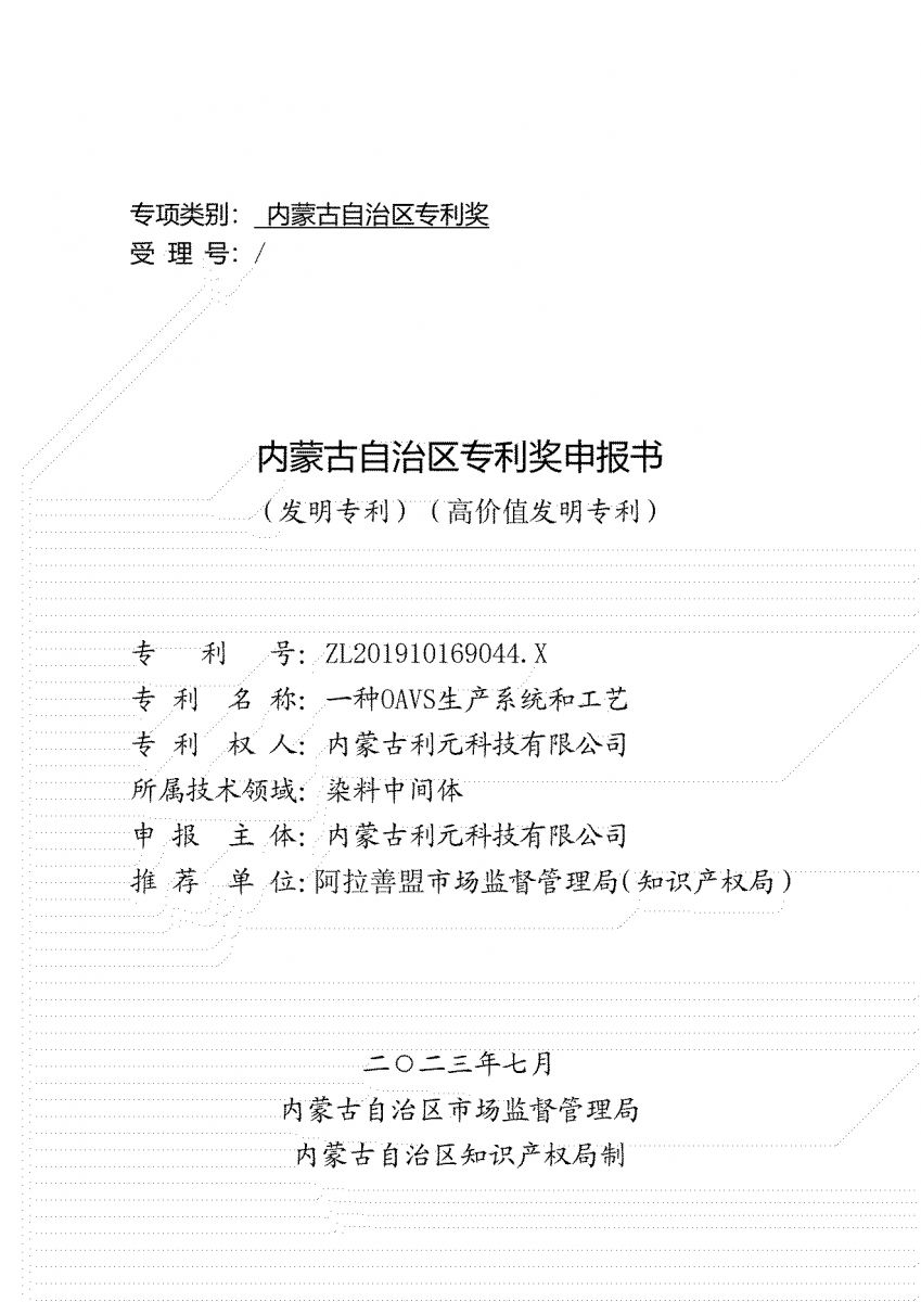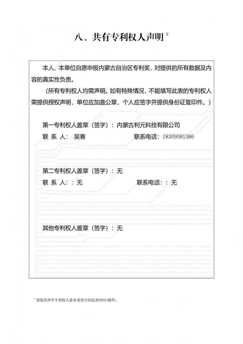 內(nèi)蒙古自治區(qū)專利獎申請書